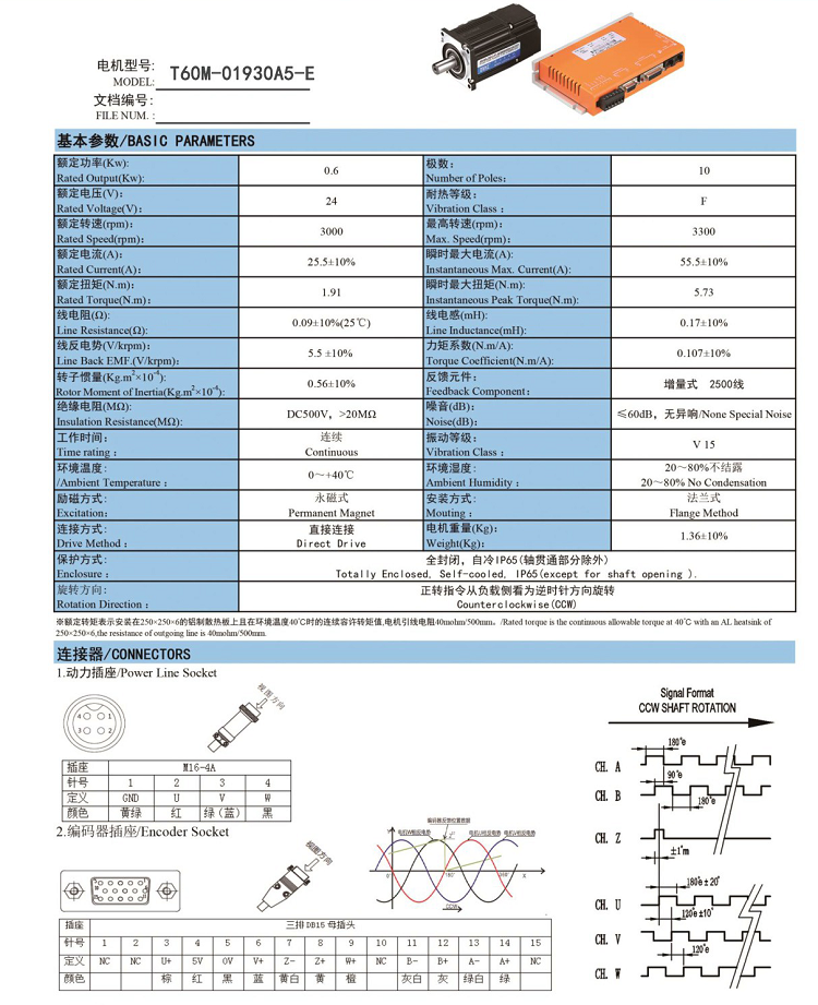 600W直流伺服電機T60M-01930A5-E